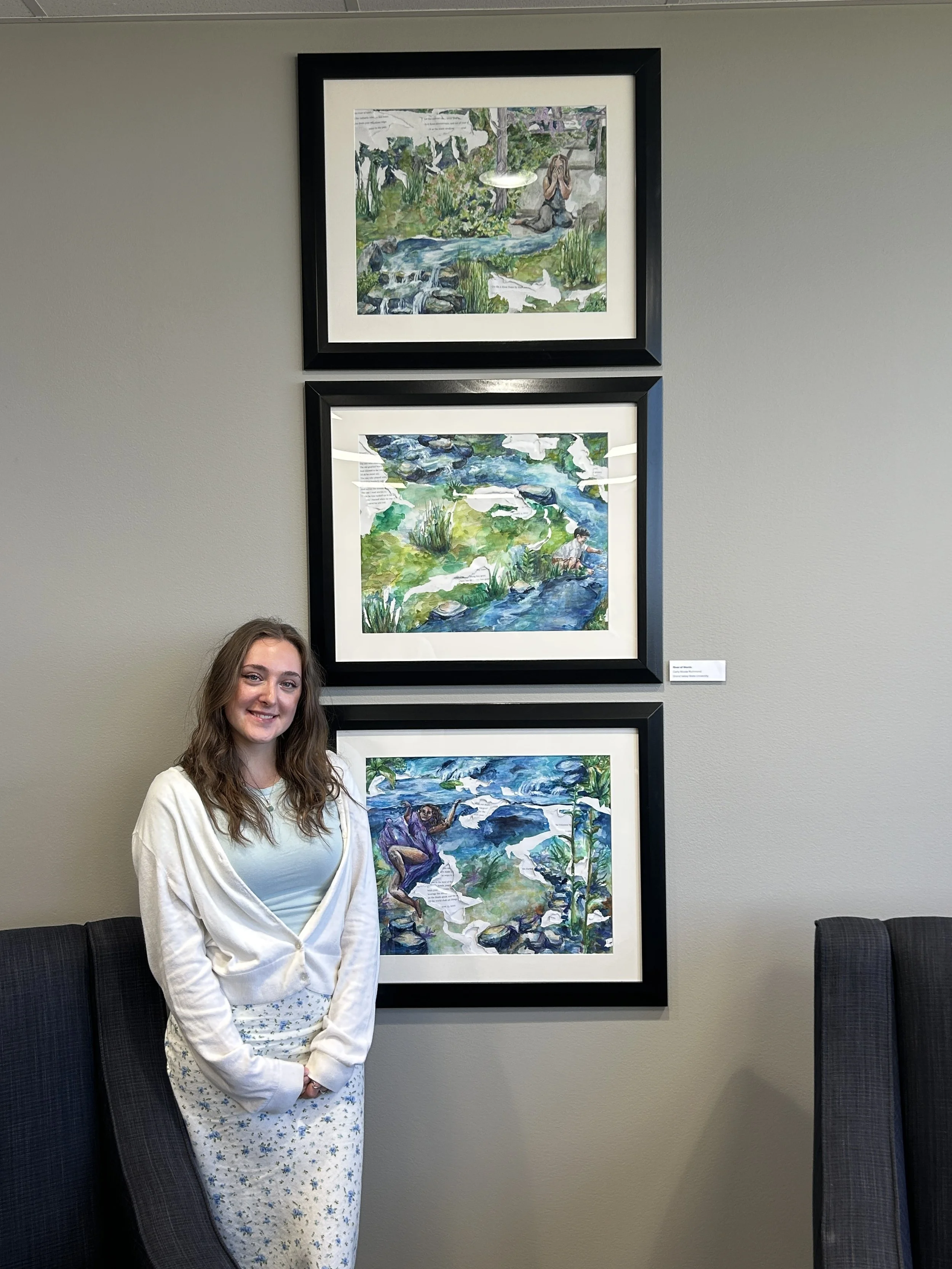 River of Words, 18" x 22" (each artwork), Watercolor and Colored Pencil on Paper, 2024